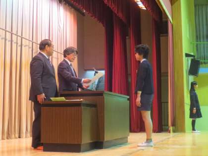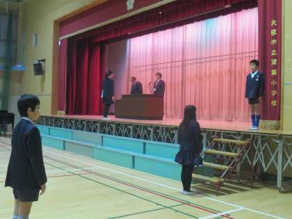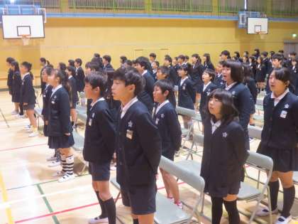 国歌斉唱、市歌斉唱、校歌斉唱・・・一人一人の卒業証書授与です。