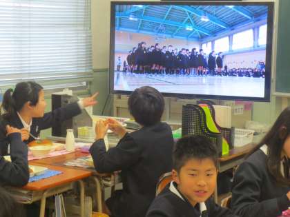 放送委員会による「卒業ビデオメッセージ」です。今日の給食時間に全教室へ放送をしました。ビデオの内容は、「卒業生を祝う会」の場面からはじまり、下級生からのお祝いメッセージ、そして、6年生が入学したときの場面から、2年生〜5年生へと成長していく場面、最後に、6年生として楽しく過ごした一年間の活動を放送していました。各学年の児童たちは、卒業していく6年生との思い出を振り返り、卒業を心から祝っていました。