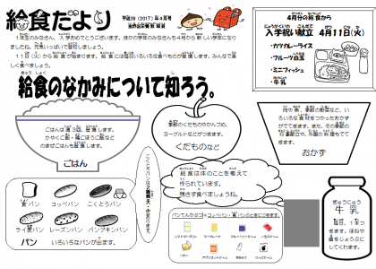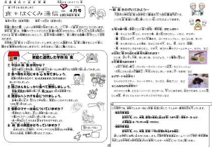 4/104月給食献立表・はぐくみ通信4月号・給食だより4月号