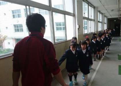 今日は、廊下の歩き方を習いました。けがや体調ぐぁるくなった時に行く「保健室」と担任の先生がいなくても、たくさんの先生がいる「職員室」まで歩きました。