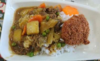 一口トンカツののったカレーライスです。子ども達に好評な献立です。