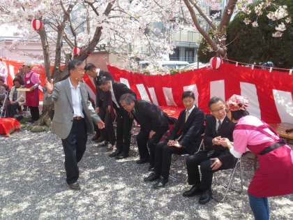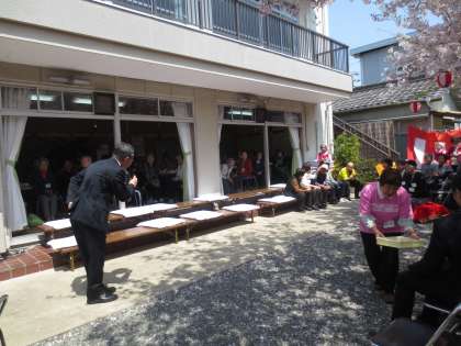 最初に生野区長さんをはじめ、ご来賓の方々のあいさつがあり、楽しい食事会「お花見サロン」がはじまりました。