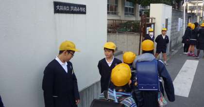 池の水が凍るぐらい寒い朝ですが、児童会の子ども達は正門に立ち、元気よく「おはようございます」と声を掛けていました。