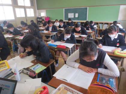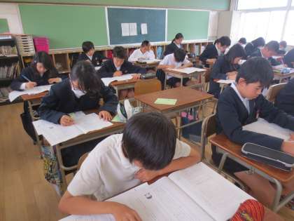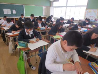 1時間目に国語Aと算数A、2時間目に国語Bに取り組みました。全員が真剣に解答を考えていました。