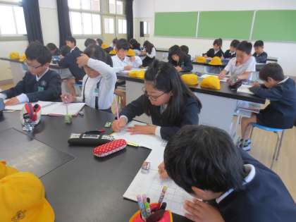 4/19(水)理科室で4年生が「校庭の春を探そう」と春の草花や虫たちの調べ学習をしていました。