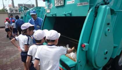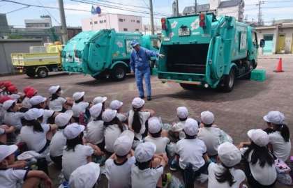 4月25日(火)2、3時間目に4年生の出前授業「パッカー車体験」がありました。