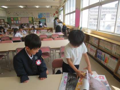 今日は1年生の子どもたちもきていて、ボランティアの方々に、自分の読みたい本をさがしてもらっていました。