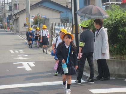 子どもたちは笑顔で「あいさつ」していました。「見守り隊」の方々も笑顔で声かけをしてくださっていました。