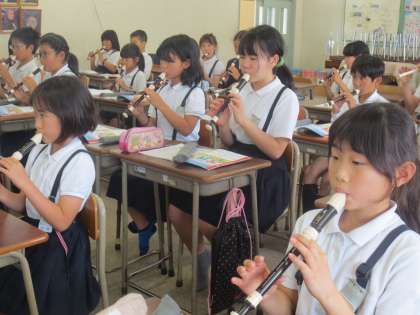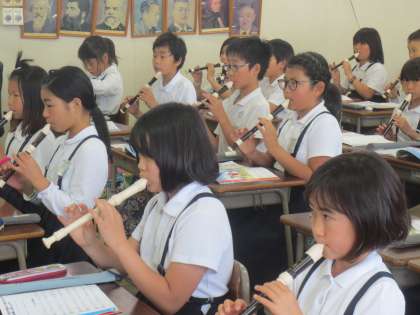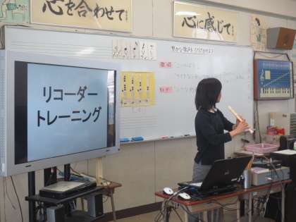 授業の後半で「リコーダートレーニング」をしていました。一人ひとりが、リコーダーからきれいな音を響かせていました。さすが5年生です。