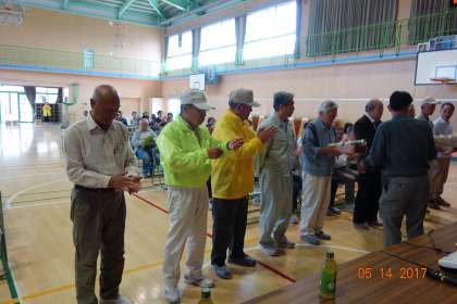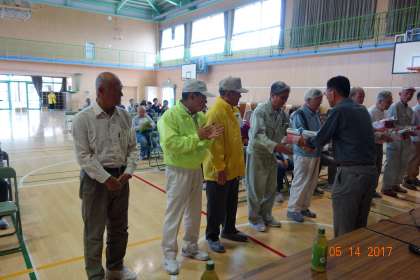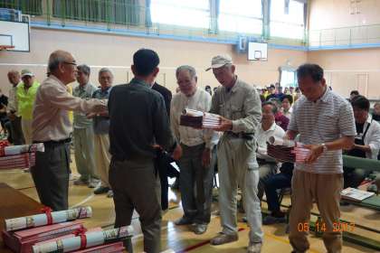 1〜9町会の町会長さんに、「地区防災計画書」と「防災マップ」を贈呈しています。