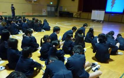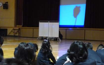 1年生と6年生がペアになり、映し出されたシルエットを見て、何か答える「シルエットクイズ」をしました。