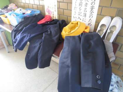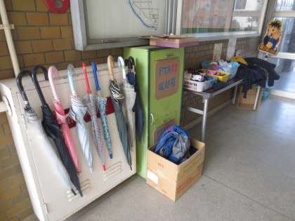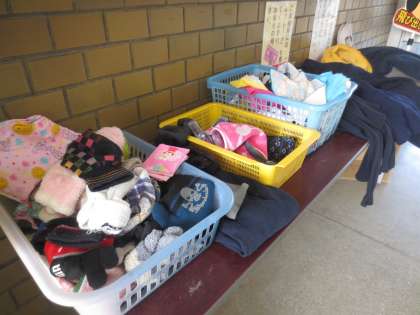 正面玄関を入ったところに「落し物」をだしております。名前がなく持ち主をさがしています。標準服・標準帽・セーター・傘・手袋・ハンカチなど、子どもたちの持ち物が「落し物」として沢山あります。保護者の方々もご覧になっていただけますようお願いいたします。