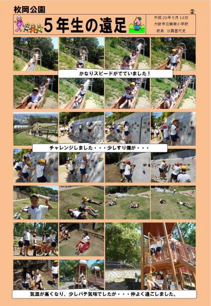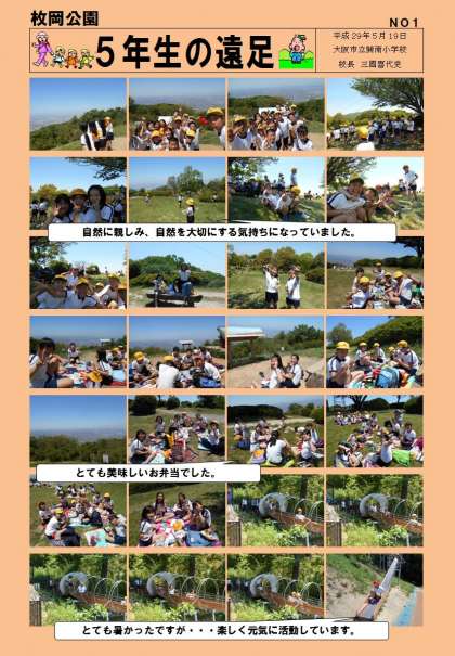 5/19(金)5年生が枚岡公園に行きました。気温が30度まで上がり心配しましたが、水分をしっかりとり、元気に活動をしていました。