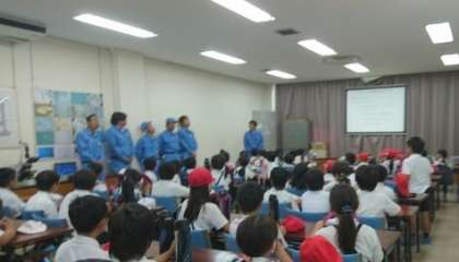 最後に、今日見学後に気づいたこと疑問に思ったことを質問しました。「下水処理場から出る水はどこに行きますか?」