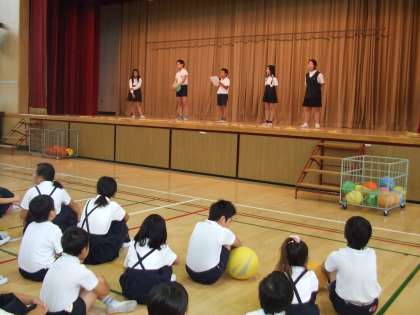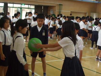 グループで輪になって、集会委員がごろごろと言っている間、ボールを回します。