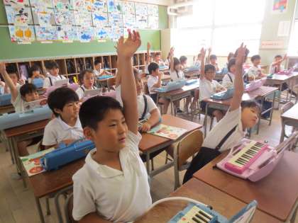 【2年1組】音楽科「はくのまとまりを かんじとろう」