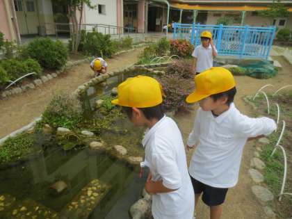 子どもたちは池や小川が大好きです。特に低学年の子どもたちは、生き物を見つけて手を水の中へ・・・メダカ・ヤゴ・ドジョウ・ザリガニなどなど