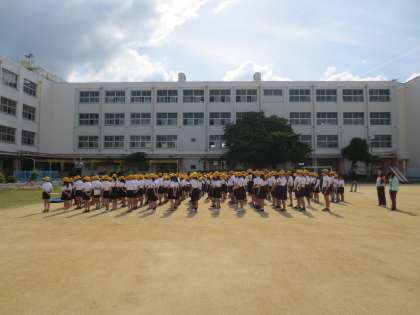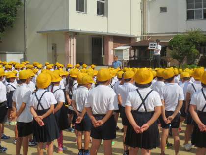 立って整列する姿勢も健康的な立ち方が大切です。今日は立っている姿勢についての「健康チェック」しました。ほとんどの子どもたちはしっかりとした姿勢で立っていました。