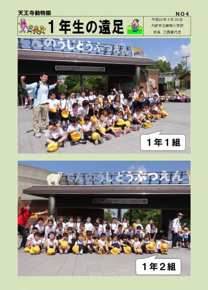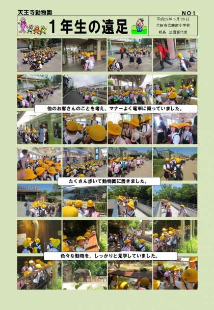 「学校長だより」1年生遠足「天王寺動物園」