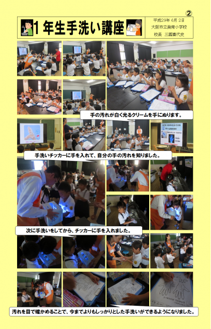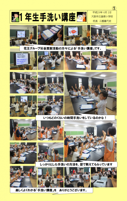 「学校長だより」1年生 手洗い講座