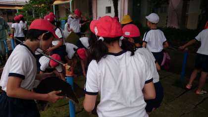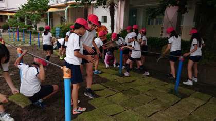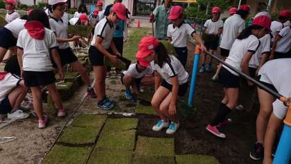 とても6年生はしっかりとした作業をしていました。次々と芝生を運び補植していきました。