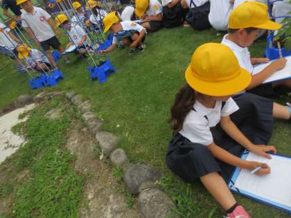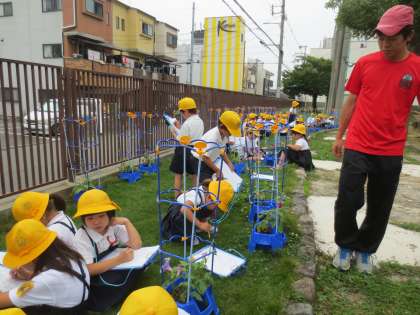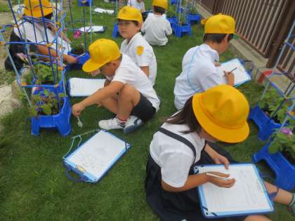 生長したアサガオに子どもたちは笑顔いっぱい!しっかりと観察をしていました。