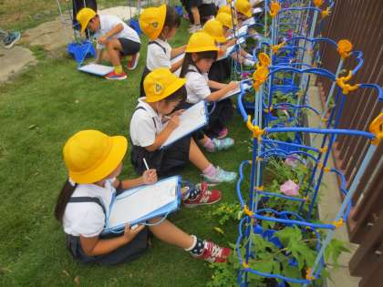 6/28 1年生の朝顔観察(1)