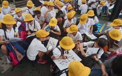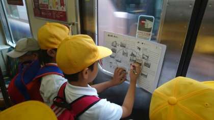 6月30日(金)、3年生は、社会科の授業で、大阪環状線に乗って大阪市の様子を調べました。平野駅から新今宮駅で乗り換え、大正駅、大阪駅、大阪城公園駅、天王寺駅と大阪環状線を一周しました。電車の中から見たもので気づいたことや印象に残ったことを見つけました。大正駅、大阪駅、大阪城公園駅で降りて、ワークシートにメモを書きました。