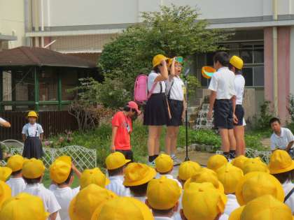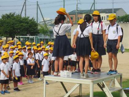 あいさつの仕方を代表児童が見本を見せて、気持ちのよいあいさつができるよう呼びかけていました。