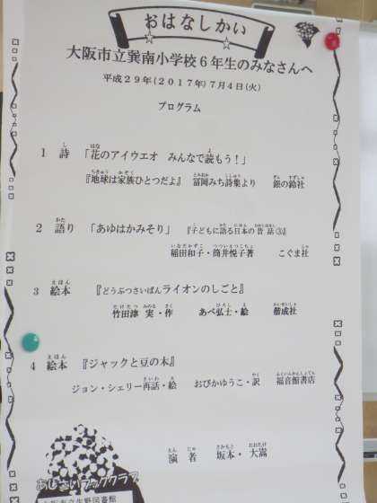 生野図書館より「あじさいブッククラブ」の坂本さん、大嵩さんに「お話し会」していただきました。
