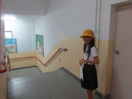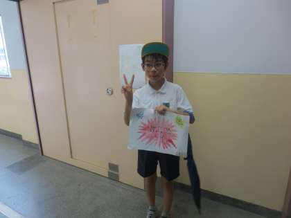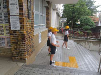 廊下や階段上り口でも、児童会の子どもたちが呼びかけていました。