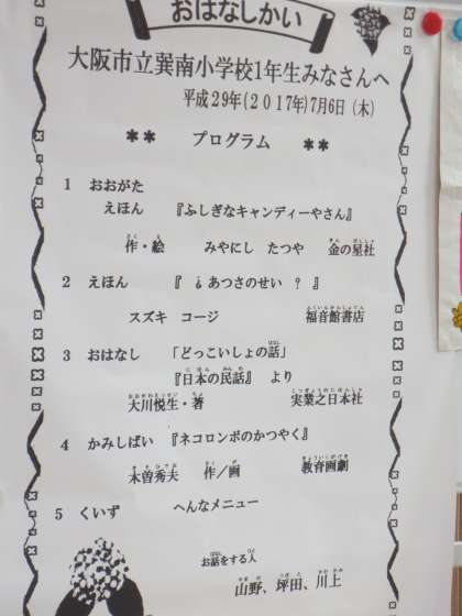 生野図書館より「あじさいブッククラブ」の山野さん、坪田さん、川上さんに「お話し会」していただきました。
