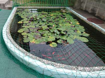 「玄関の池」「レインボーパークの二つの池」「保健室裏の池」全部で四つの池があります。「保健室裏の池」は、ここで生まれた金魚が200匹ほどいます。最初は小さく池のどこにいるのか分からなかったですが、今では大きくなり群れになっておよいでいます。