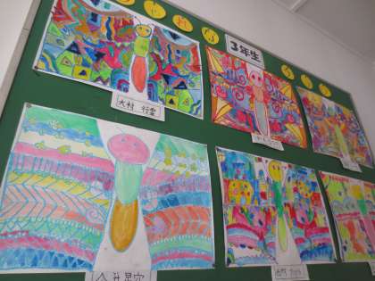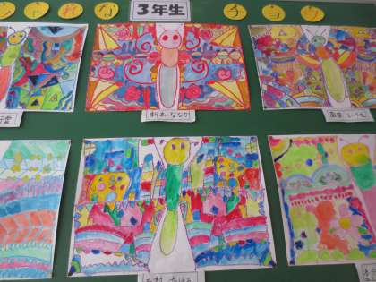 3年生の作品「おしゃれなチョウ」です。どれも美しく、飛び出してきそうなチョウばかりです。