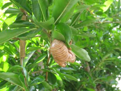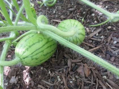 暑い夏です。ザクロの実が大きくなりはじめています。セミのぬけがらがあちらこちらにありました。スイカが大きくなってきました。