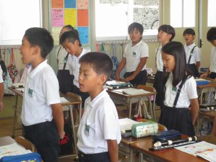 7/18(火)の音楽の学習です。リコーダー演奏の後、合唱をしていました。