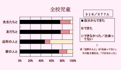 1学期、児童会代表の子どもたちが呼びかけて「あいさつ」への意識を高めようと「あいさつ週間」に取り組みました。その時、児童一人一人が自己評価したものを集計しました。あいさつへの意識が高まってきていますが、積極的にあいさつにする児童はまだ少ないようです。2・3学期も取り組んでいきますので、ご家庭でもお声かけ等、ご協力よろしくお願いいたします。