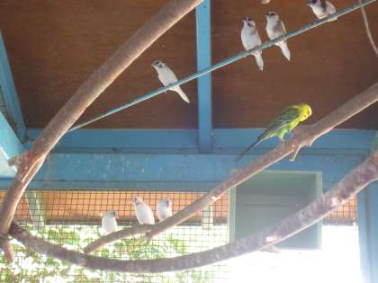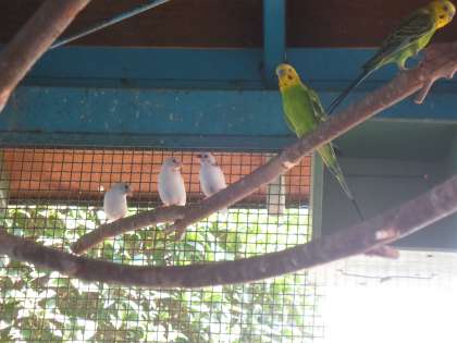 セキセイインコも十姉妹も元気に暮らしています。たくさんのいても仲よく飛び回っています。時々、いたずら好きのインコが十姉妹の巣に近づきますが、ケンカにはなっていないようです。