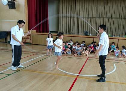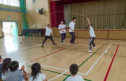 はじめてのスポーツで、跳べるか心配でしたが、インストラクターの励ましや、指導によって、どの子も「ダブルダッチ」を経験することができました。最後に、インストラクターの演技をみて、速く跳んだり、アクロバティックに跳んだりして「ダブルダッチ」の競技のすごさや楽しさが伝わってきました。