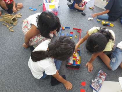 運動場や他の部屋も使って活動しているのですが、この時間は、いきいきの部屋で一人一人が工夫して、仲よくみんなで協力して活動していました。とても楽しそうに活動をしていました。