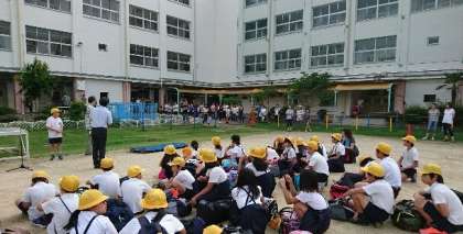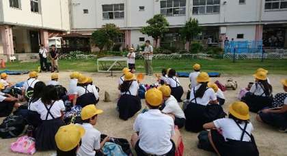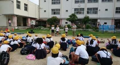5年生は、7月29日(土)から31日(日)まで、2泊3日で、ハチ高原へ林間学習に行きます。7時30分ごろには、欠席者もなくみんな元気に集合しました。係児童の進行で、出発式が進められました。