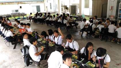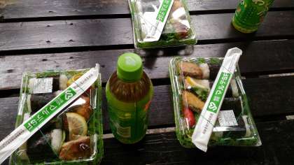 多目的広場に移動して昼食の弁当を食べました。ハチ高原のおいしい空気も食べました。