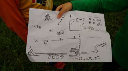 トレジャーハンティングについて、係の人から説明がありました。地図を頼りに、みんなも出発!