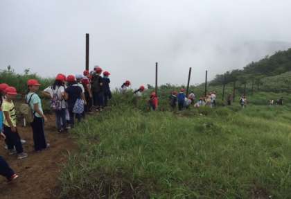 頂上からのすばらしい景色ともお別れで、宿舎に向かって下山しました。やっぱり登山はとても疲れました。おやつのかき氷は特においしかったです。(登山の疲れは…)