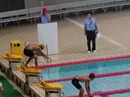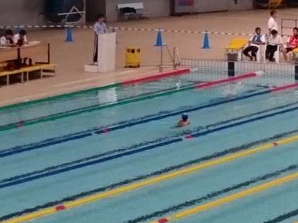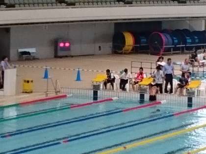 50mプールで泳ぐことは、あまり経験がなく、距離が長く感じていたようです。