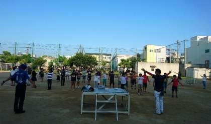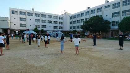 朝食も終わり、朝のラジオ体操をしました。なかなか眠れなく起きていた子どもたちですが、元気にラジオ体操をしていました。(家に帰ったら、ぐっすり眠るでしょう…)