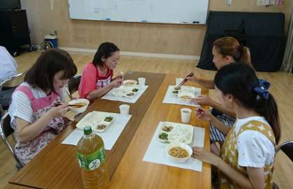 「素材が生かされた味つけがよかった。」「きょうは、すまし汁だが、野菜が多かった。」「給食では、どのようにおかずを配っているのか知りたい。」などたくさんの感想や質問がありました。栄養教諭が質問に答えました。また、給食について説明しました。