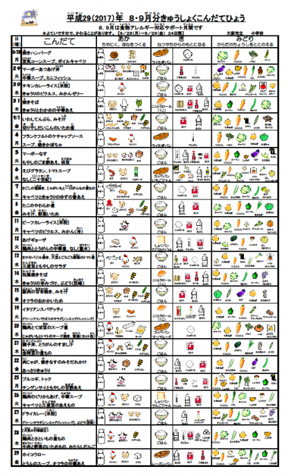 8/25 8・9月給食献立表・はぐくみ通信・給食だより