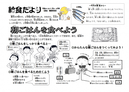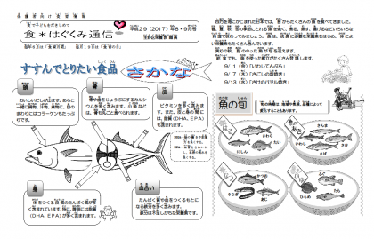 8・9月の給食献立表・はぐくみ通信・給食だよりを配付します。右記の配布文書にも載せています。ご覧下さい。