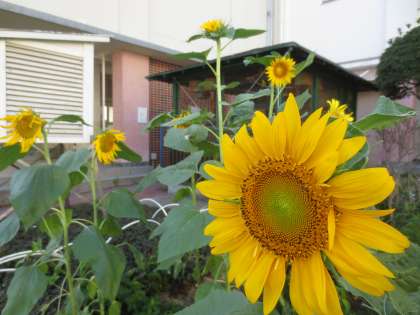 8月中ごろから、レインボーパークにヒマワリの花が輝いていました。